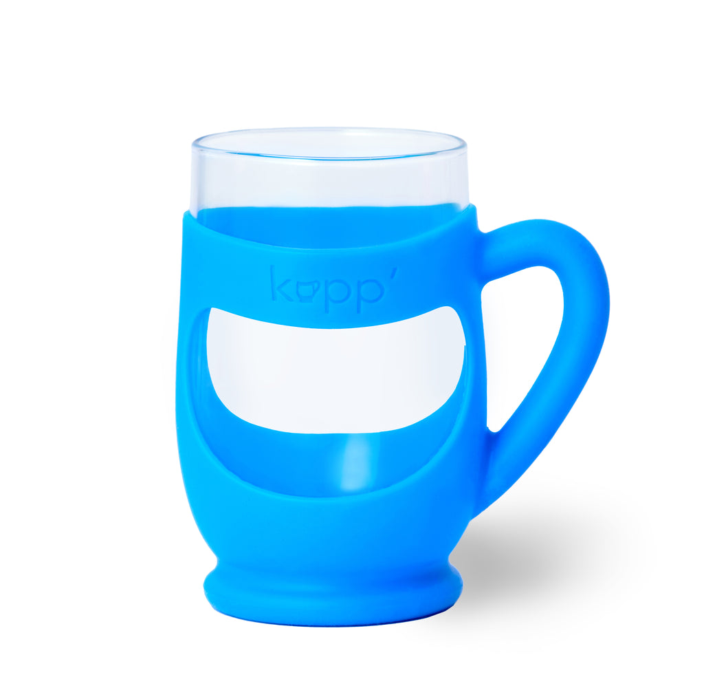 The Kupp’, a six ounce European glass outfitted with a colorful silicone sleeve, is designed for children three and older. Produced in Europe and the US, the glass and the sleeve adhere to the strictest quality standards for both the US and Europe. The Kupp’ glass is certified lead and cadmium free, is made from a pure soda-lime formula and is completely dishwasher safe. The grip-friendly silicon sleeve is BPA/BPS free, medical food grade silicon and comes in a range of colors.